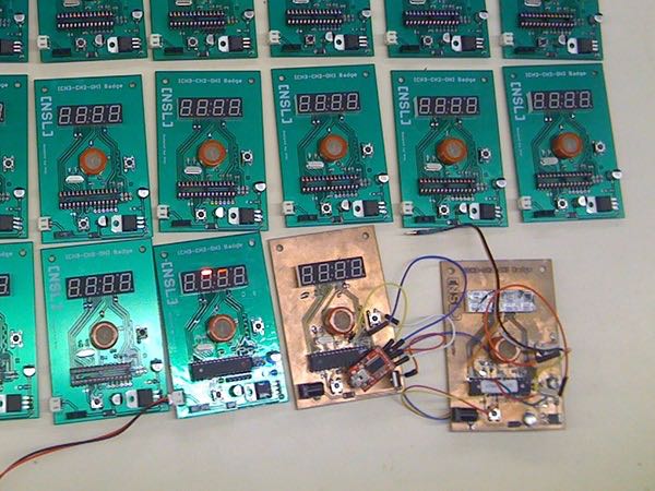 This badge was designed for use at DEFCON 18. The badge measures your Blood Alcohol Content (BAC). The board consists of an Atmel ATMEGA328, MQ-3 Alcohol sensor, 7-segment display (4), and a 9V battery. The code and hardware is open source.