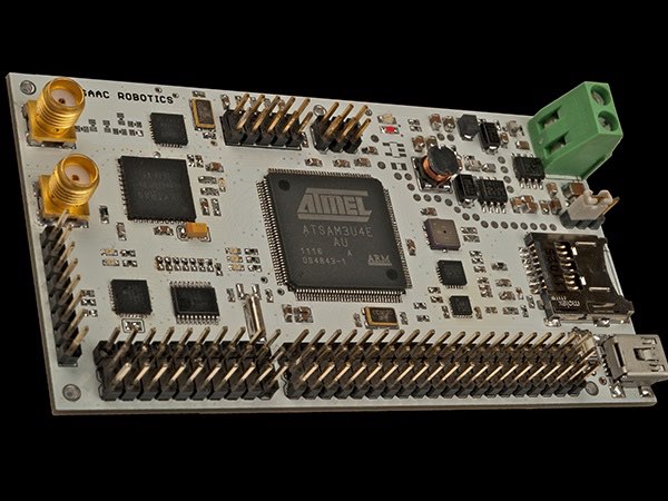 Isaac comes with extensive pre-built sensor drivers, a Kalman filter, control code, and a beta library of learning algorithms. It's programmable via USB, Zigbee Wireless Communication, JTAG, and has a Micro SD Card slot for storing data (SDHC Compatible). Its versatile on-board power supply allows the board to be powered by anything between 6 and 24 volts.